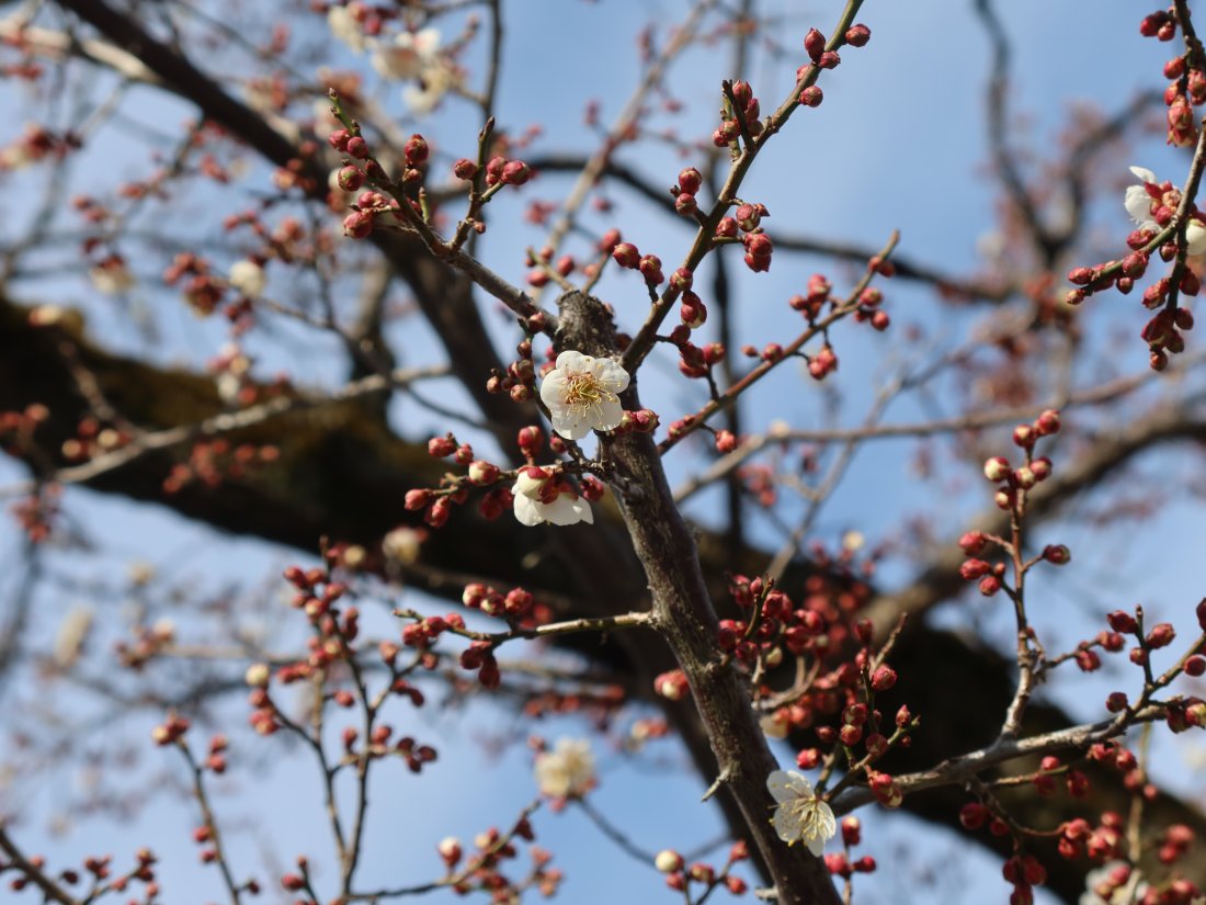 偕楽園本園、拡張部ともに早咲きの梅が咲き進んでいます。全体の1割ほどが咲いている状況です。(1本の木に梅が1輪咲いた状態の本数をカウントしております。)撮影日:1月21日(水)