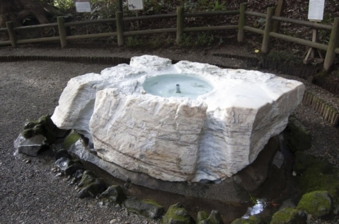 偕楽園一帯は豊富に水が湧き、眼病にも効く水とされていました。斉昭は景観を考慮して白色の井筒を据えた自水泉を設置。桜山下の国内最古の噴水「玉龍泉」と対をなしています。現在の井筒は4代目で一日約100トン湧出しています。