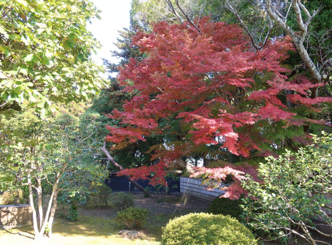 好文亭の入り口や奥御殿から見える場所で紅葉しています。