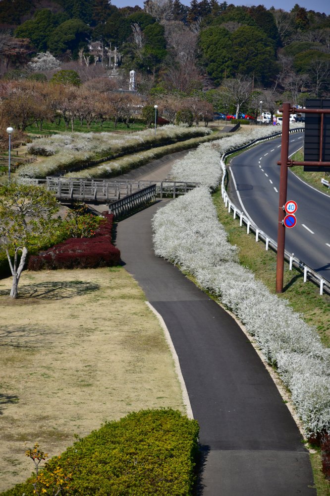 偕楽園の拡張部、田鶴鳴梅林の道路沿いにユキヤナギが咲いています。例年より少し早い印象です。撮影日:3月24日