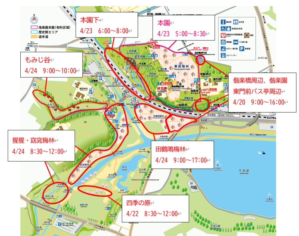 偕楽橋周辺、 偕楽園東門前バス亭周辺 |