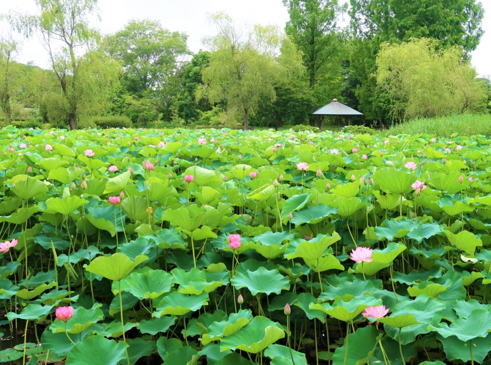 例年、7月上旬頃まで見られます。蓮池の場所は、偕楽園の西門から徒歩約3分の所です。詳細は添付のマップをご覧ください。撮影日:6月25日(水)