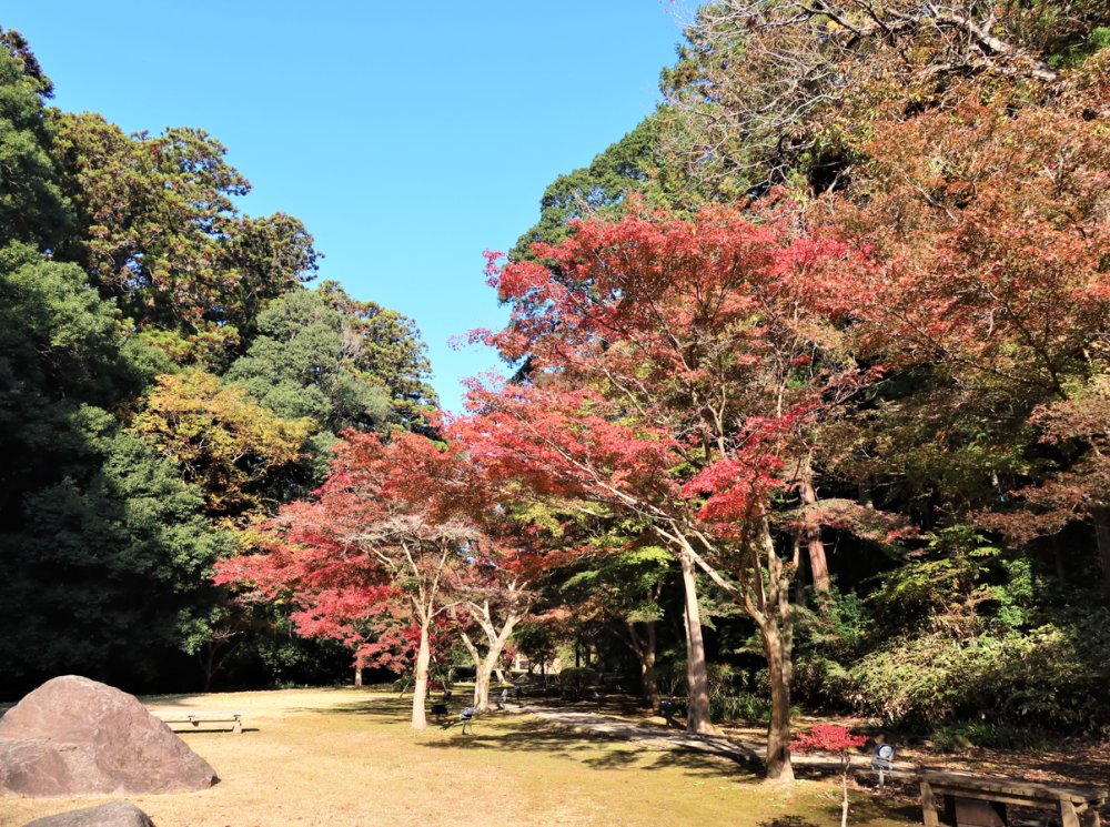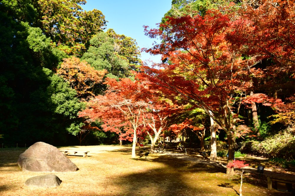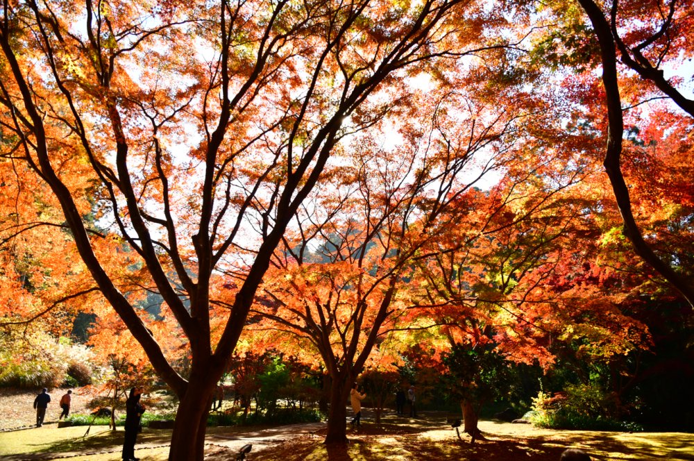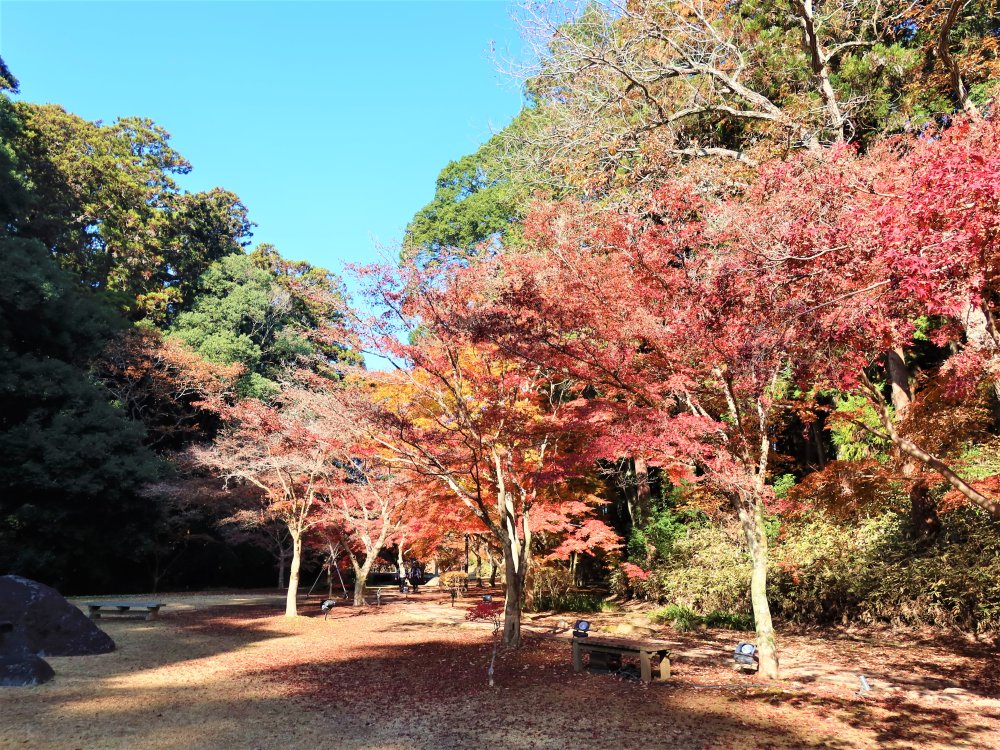 まだ青モミジの場所もありますので、赤、オレンジ、緑のグラデーションをお楽しみいただけます。撮影日:11月19日